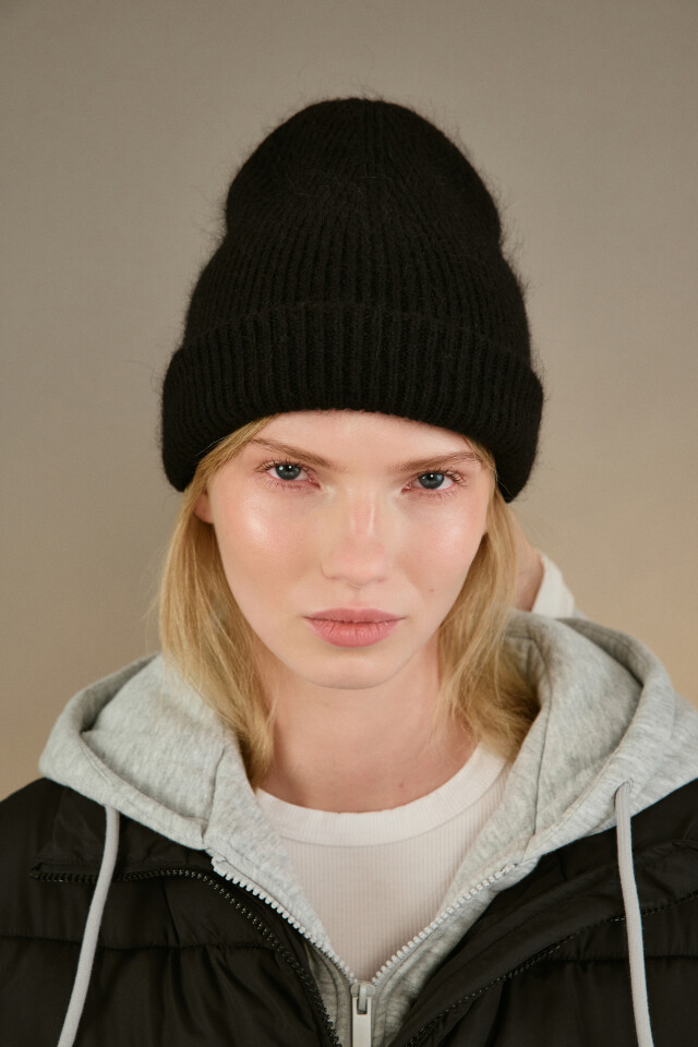 Шапка-бини WinterHat в рубчик с широким отворотом