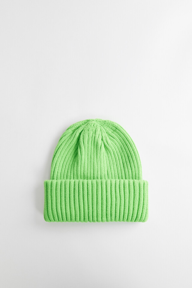 Шапка-бини вязаная в рубчик с широким отворотом