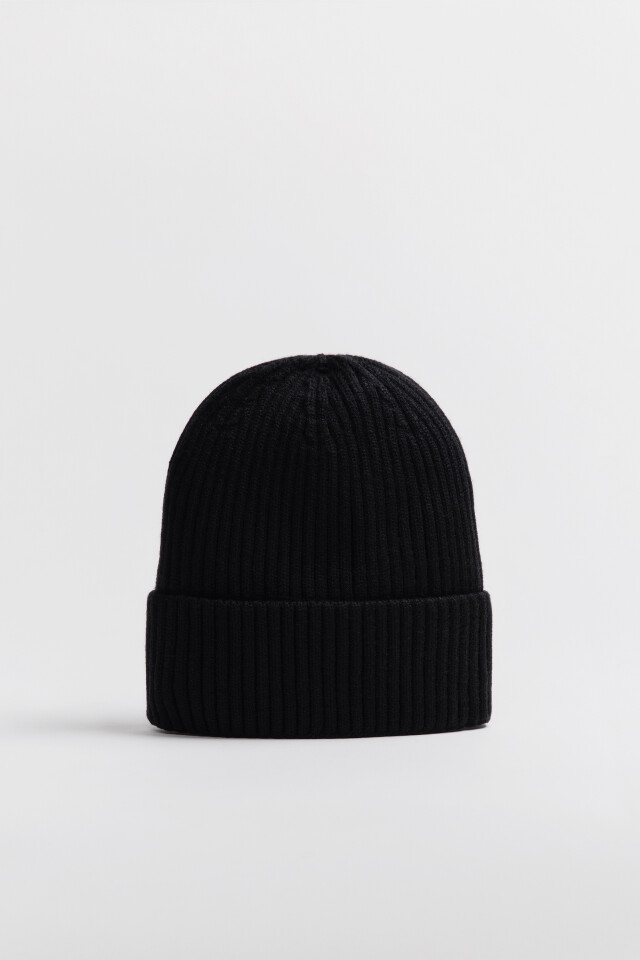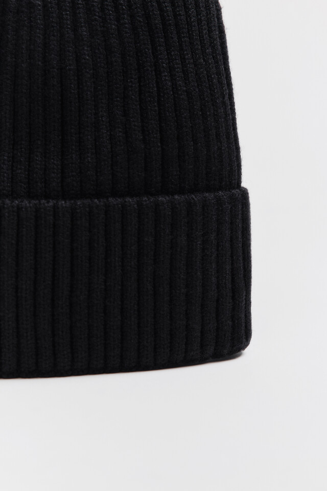 Шапка-бини хлопковая в рубчик с широким отворотом