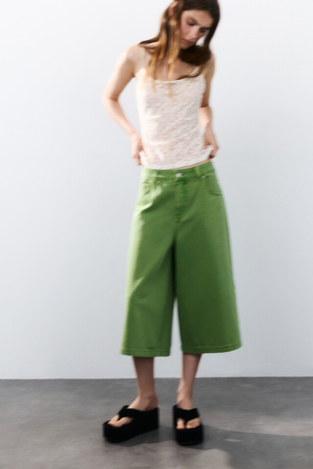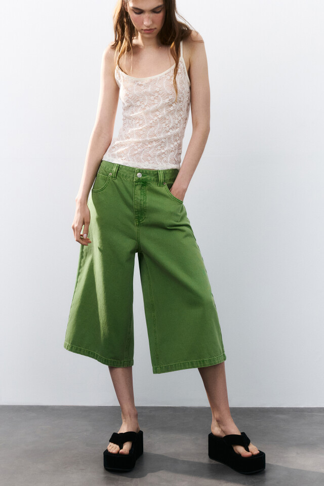 Один из трендовых фасонов джинсовых шорт — шорты-бермуды. Они отличаются свободным кроем и длиной до колена и подходят как для повседневных, так и более сдержанных образов. Такие шорты можно носить как с облегающими топами, так и с оверсайз пиджаками — они с легкостью выдержат твои модные эксперименты. Кстати, если надеть бермуды с кожаными сандалиями и классической рубашкой, то получится наряд, который способен вписаться в нестрогий дресс-код.