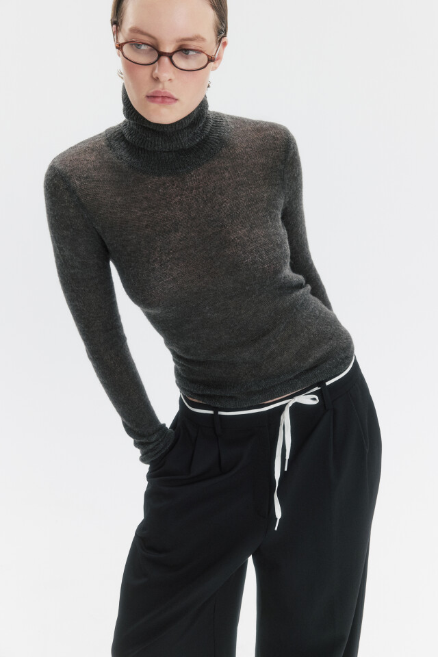 Еще один тренд — облегающий джемпер тонкой вязки. Он идеально подойдет для создания многослойных образов. В холодное время года он станет отличной альтернативой лонгсливу и футболке: его также можно миксовать с рубашками, пиджаками и кардиганами.