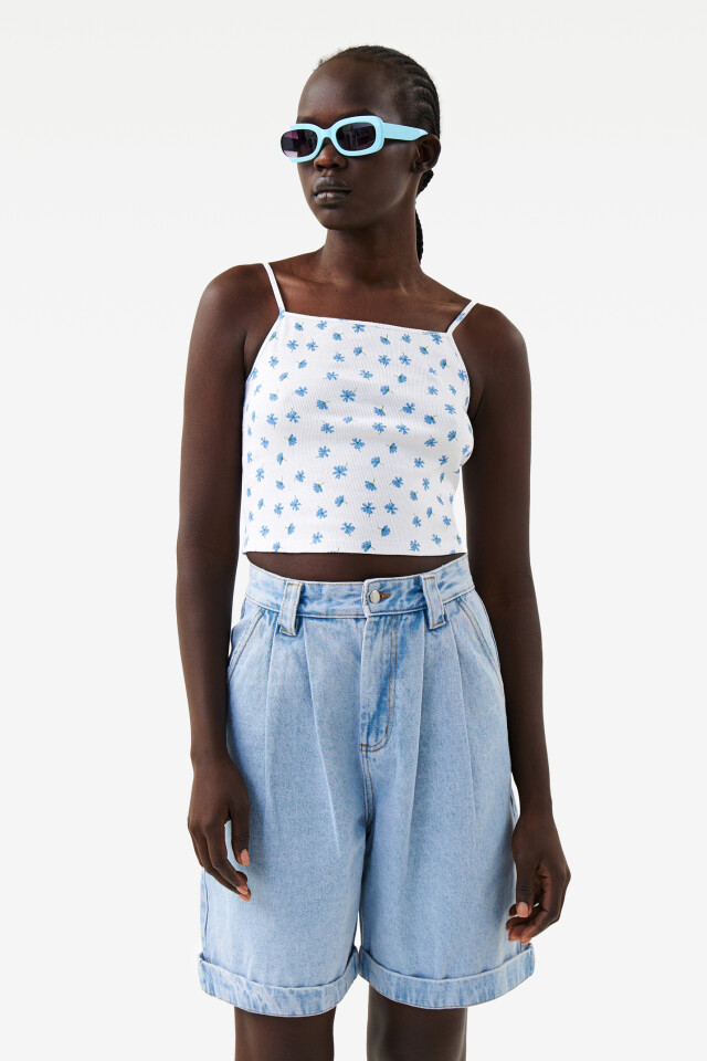 Топ-бюстгальтер короткий хлопковый с принтом