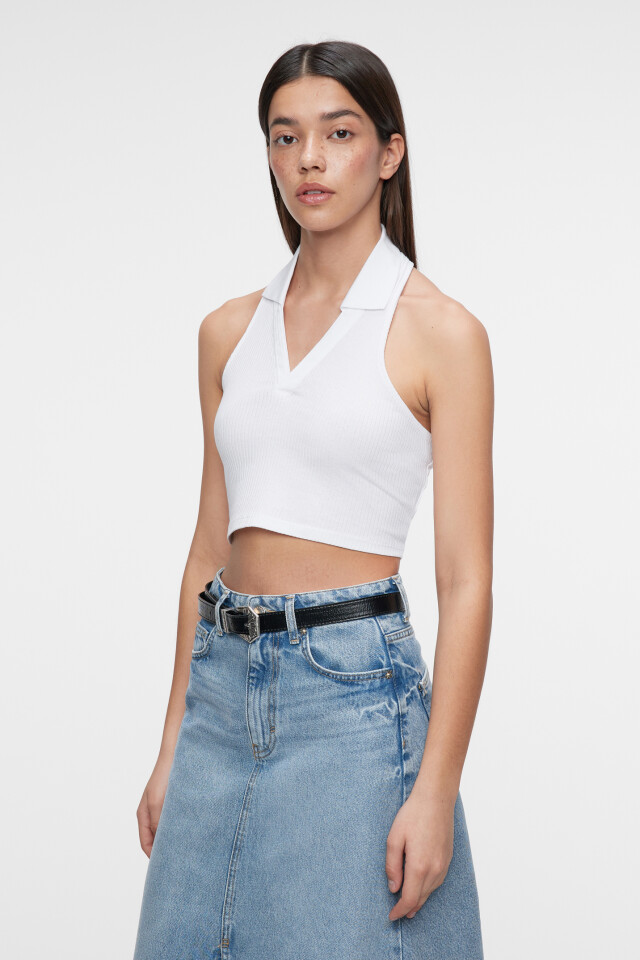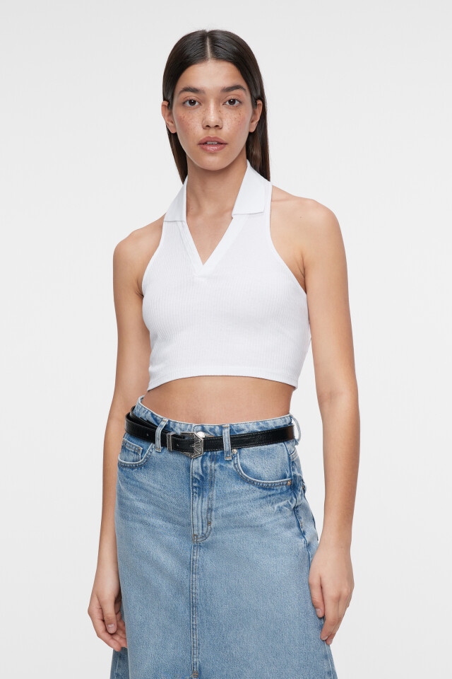 Топ-майка хлопковый укороченный с воротником поло