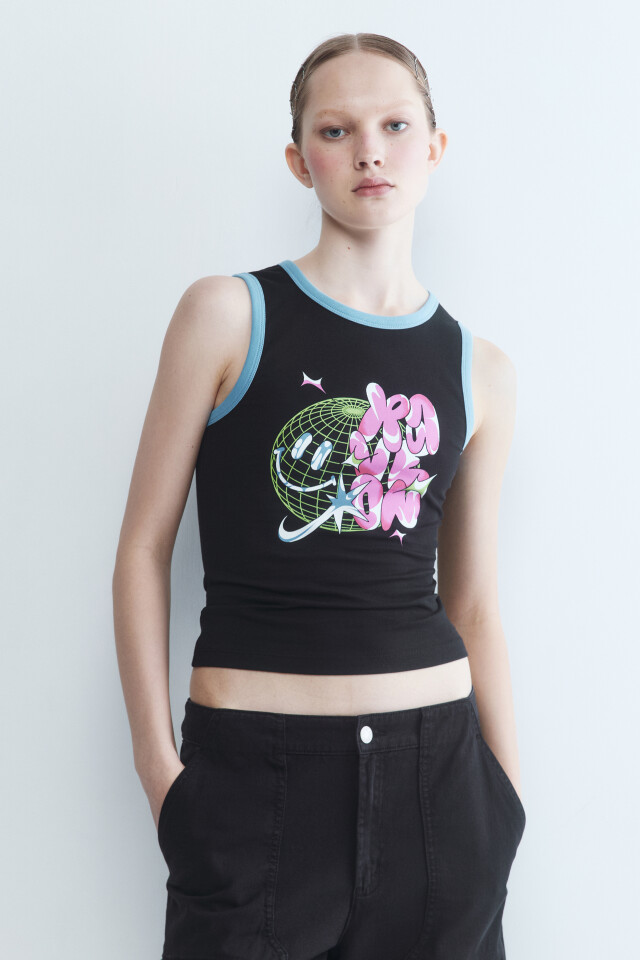 Майка с состаренным эффектом и принтом