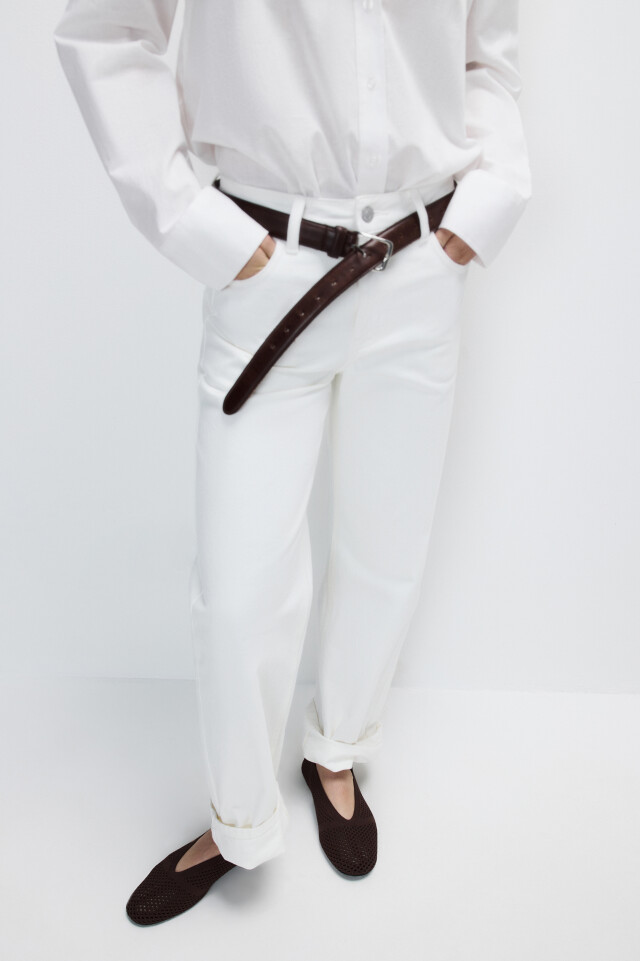 Балетки с круглым носом и ремешком