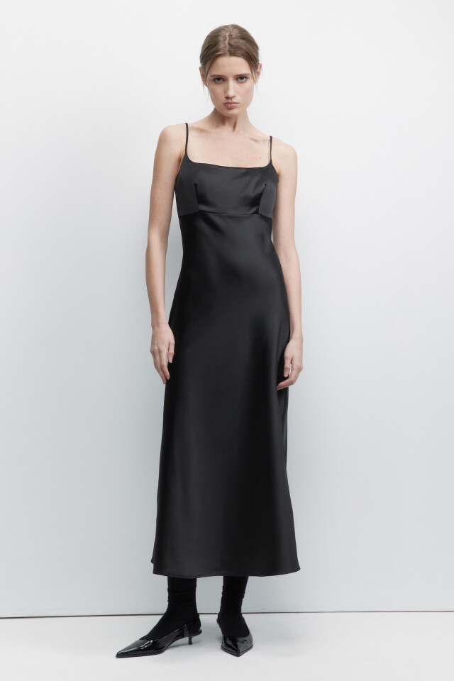 Платье-комбинация миди атласное на тонких бретелях