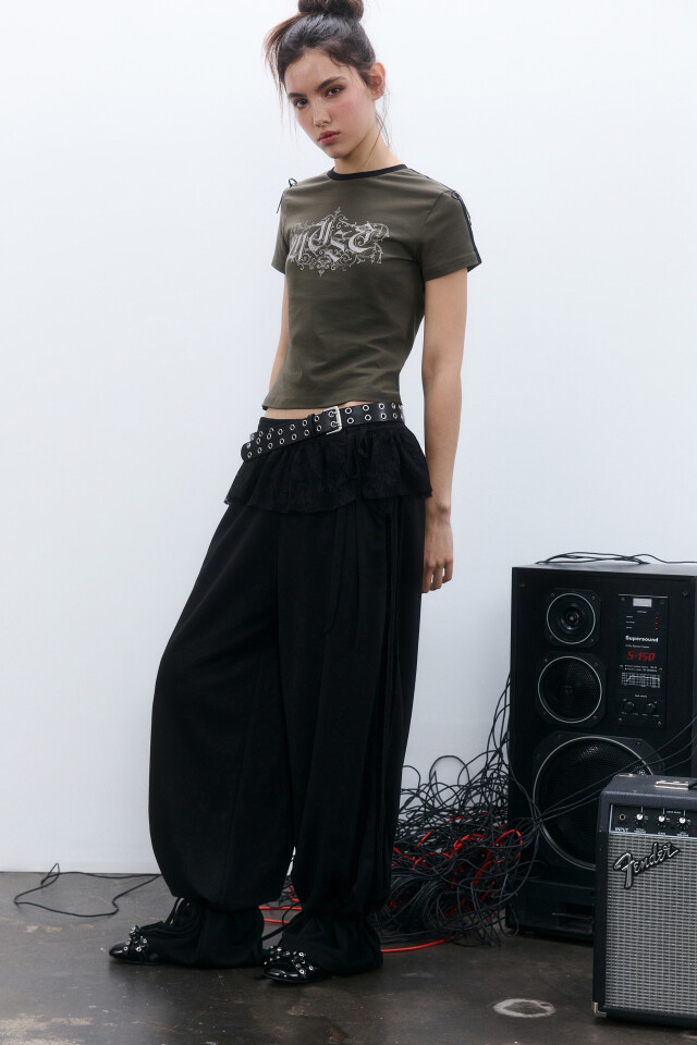 Брюки спортивные с кружевными лампасами