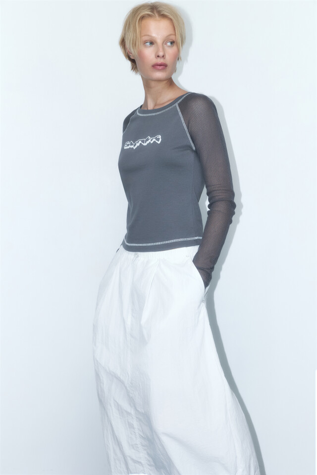 Лонгслив облегающий с сетчатыми рукавами-реглан