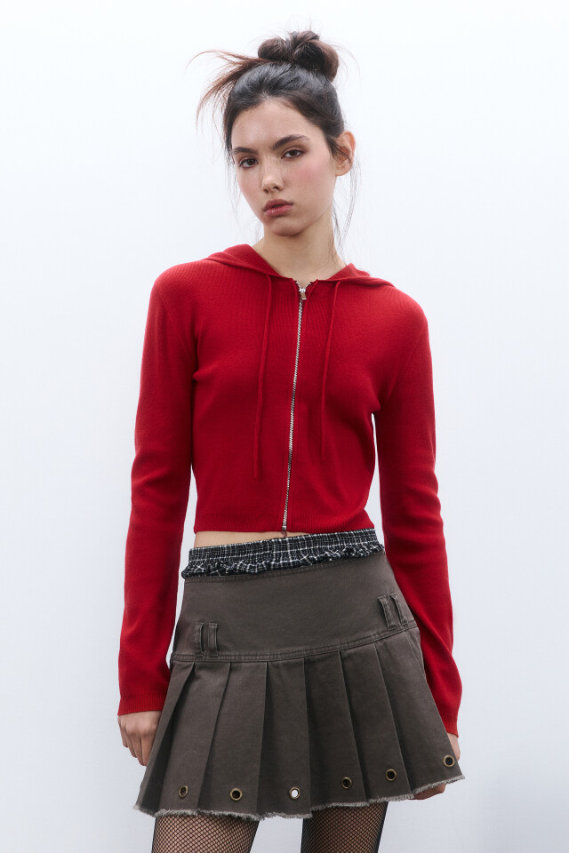 Юбка мини в складку с люверсами