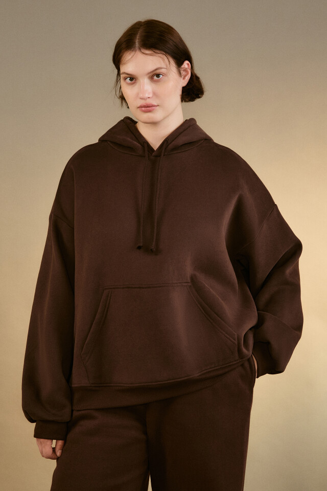- Оверсайз худи — воплощение уюта и комфорта. Идеально подходит для расслабленных аутфитов, хорошо сочетается с джинсами, легинсами и джоггерами. Станет отличной парой как для зауженных, так и для широких штанов;