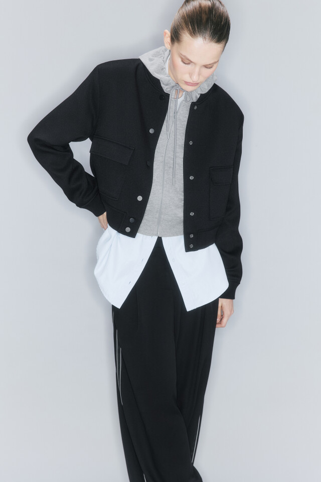 Жакет-бомбер укороченный с накладными карманами