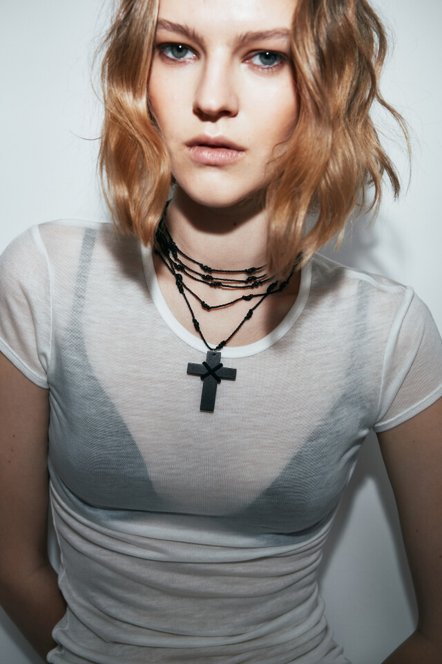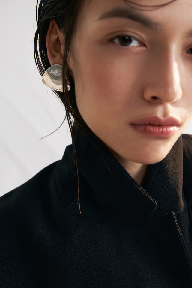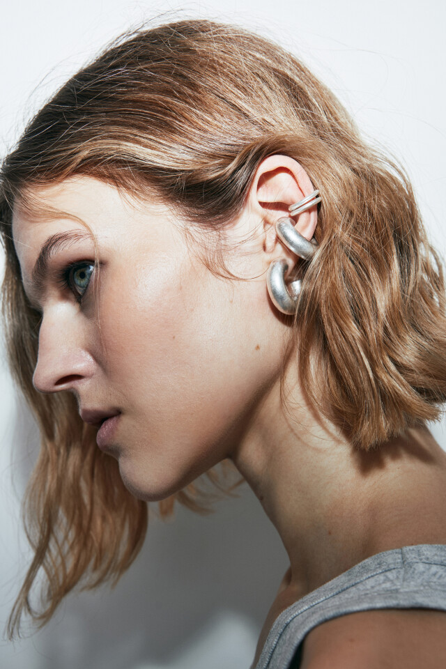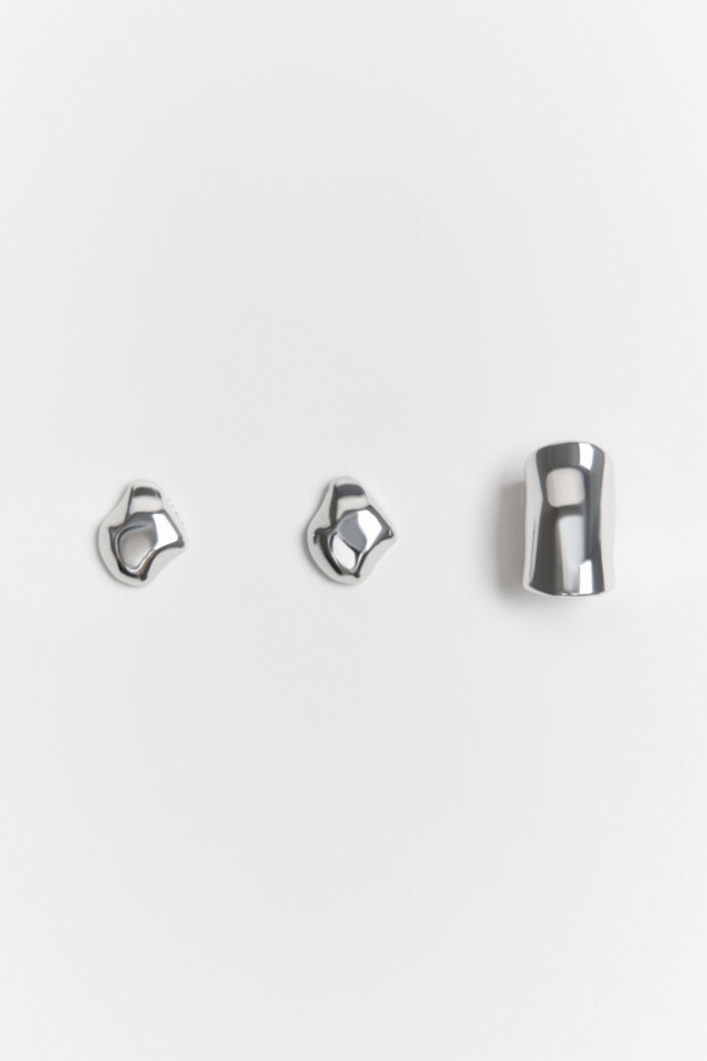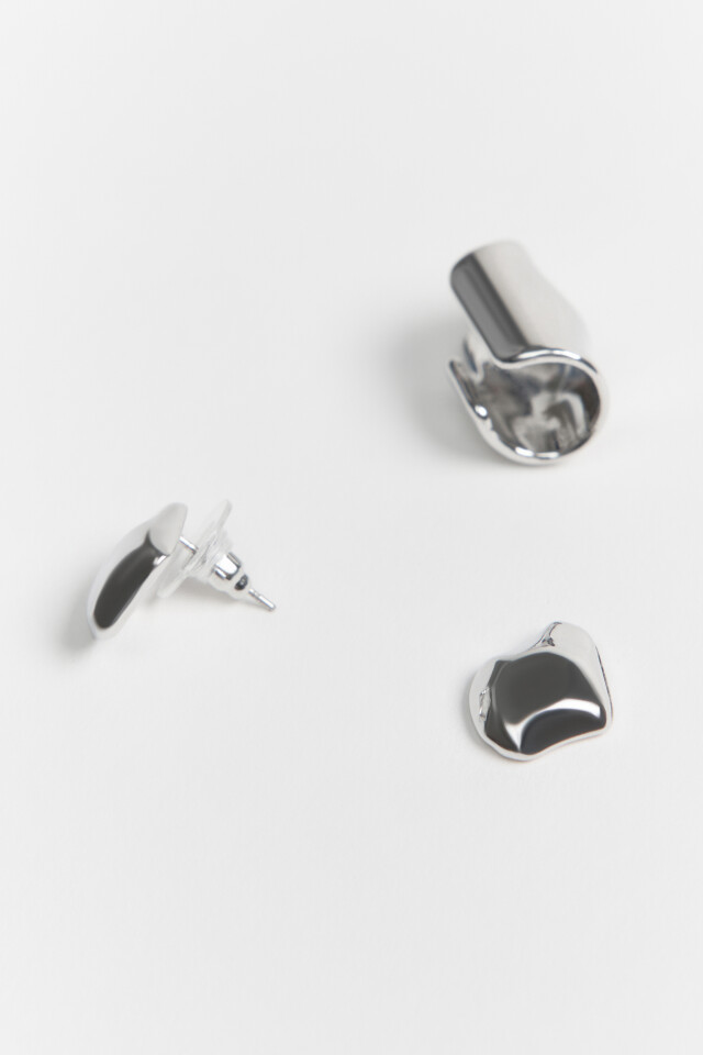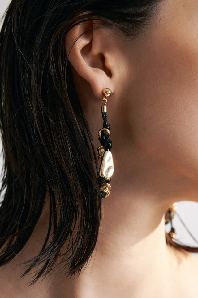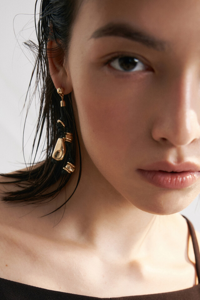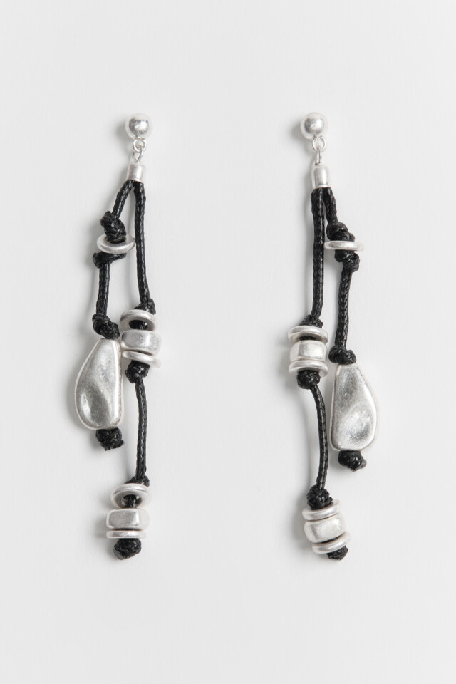 Серьги-гвоздики в виде шнурков с металлическими вставками