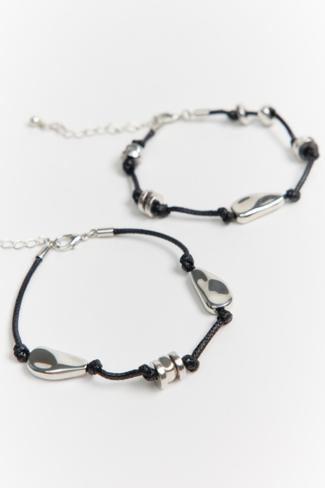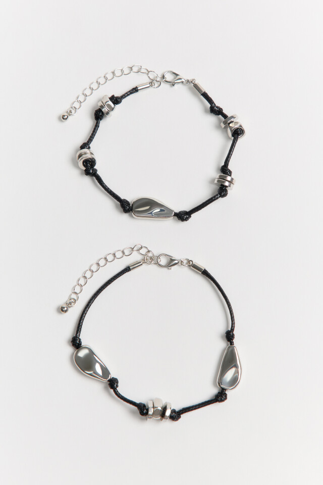 Набор браслетов-шнурков с серебристыми вставками (2 штуки)