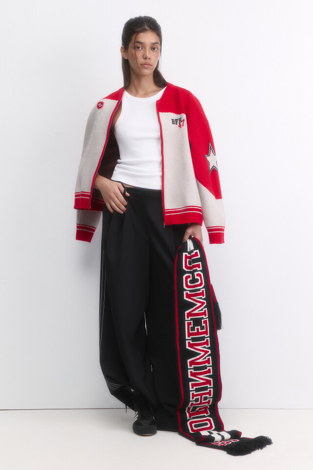 Шарф вязаный с бахромой и надписью