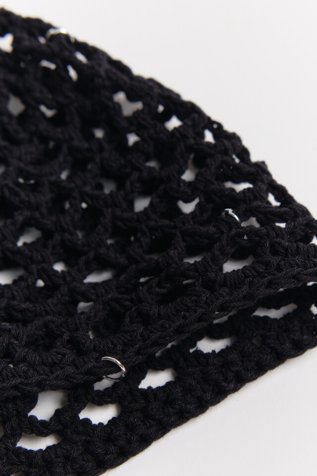 Шапка-бини вязаная ажурная с колечками