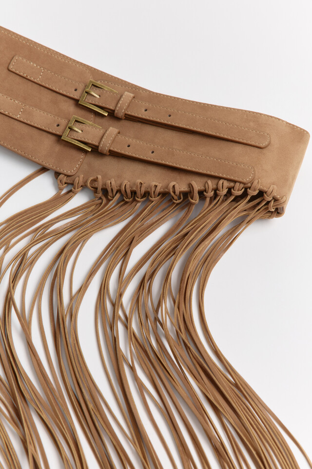 Ремень-пояс с замшевой фактурой и бахромой