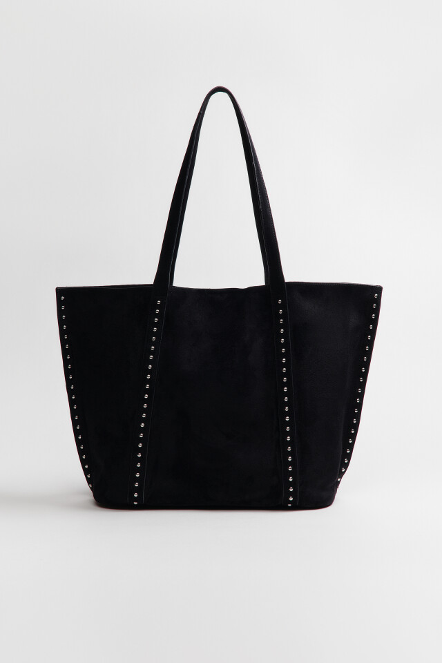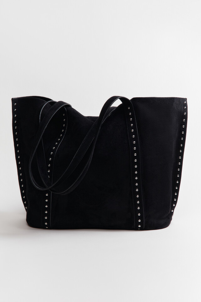 Сумка-шопер с замшевой фактурой и заклепками