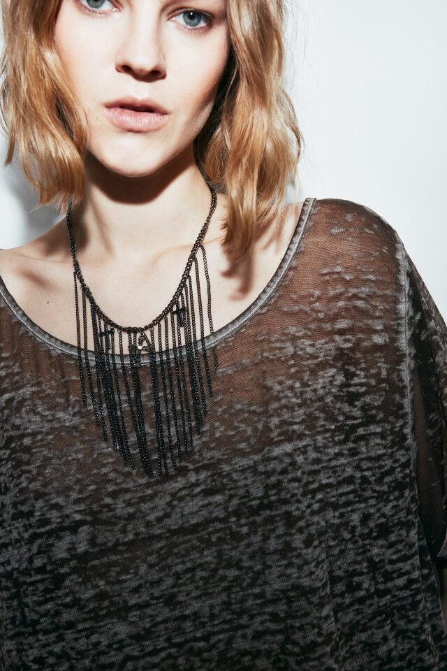 Колье с длинными цепочками и подвесками