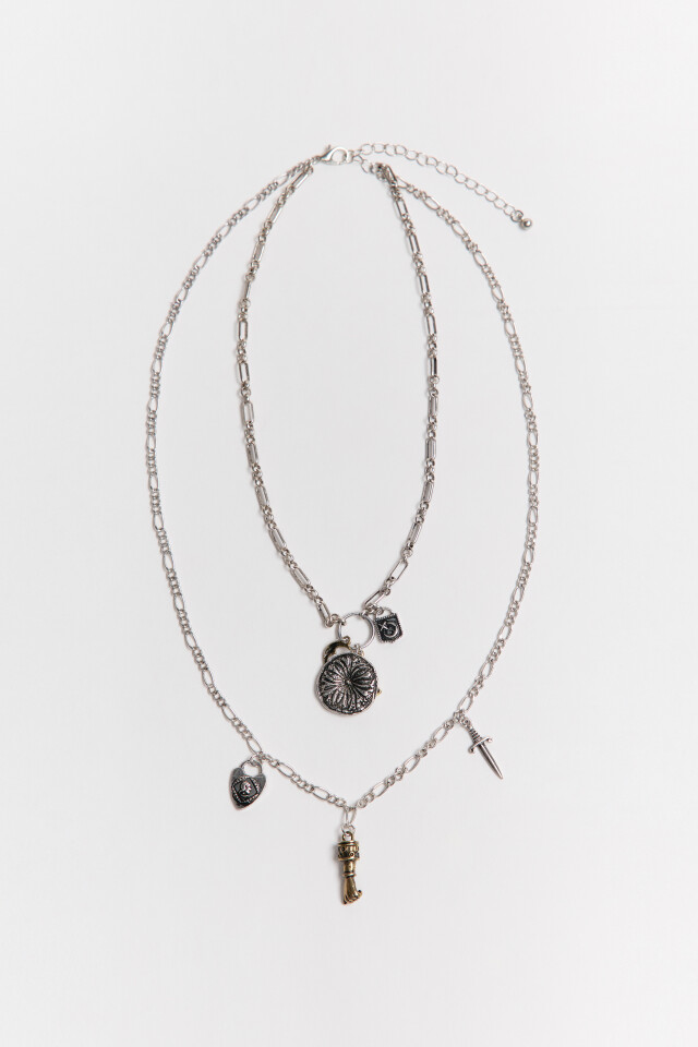 Колье-цепочка двухслойное с подвесками