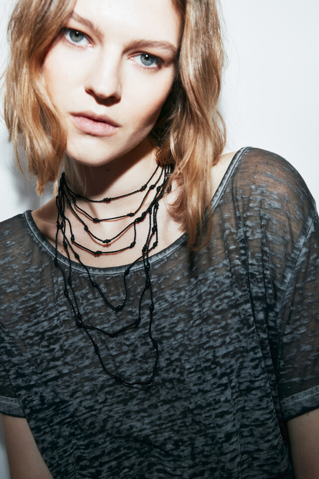 Колье-цепочка с черными бусинами