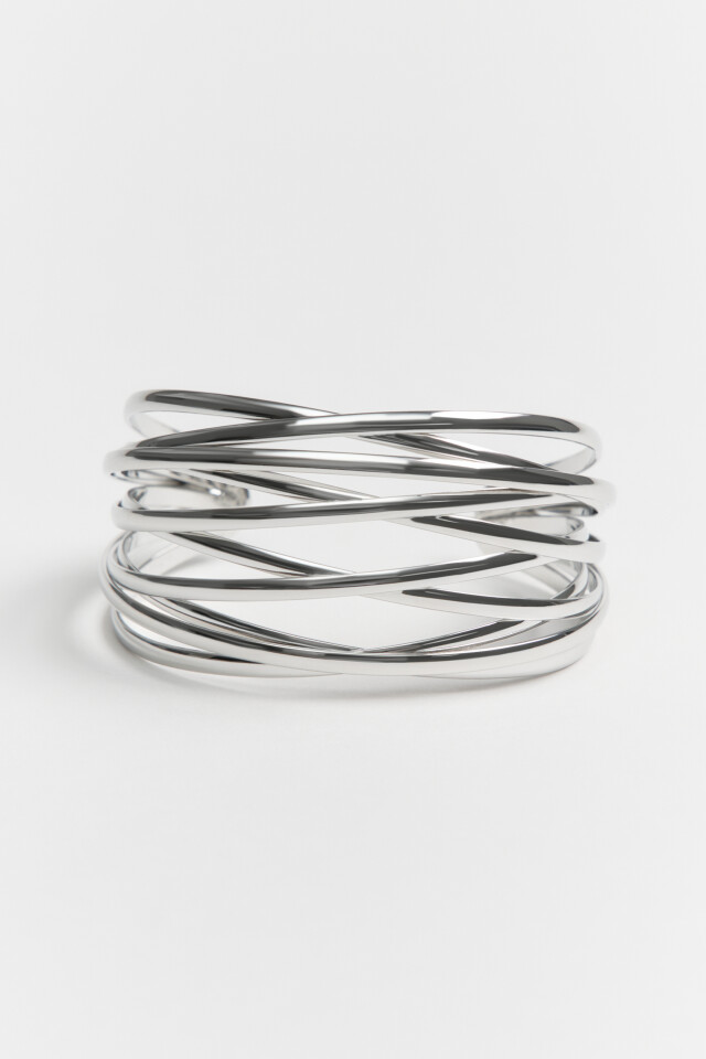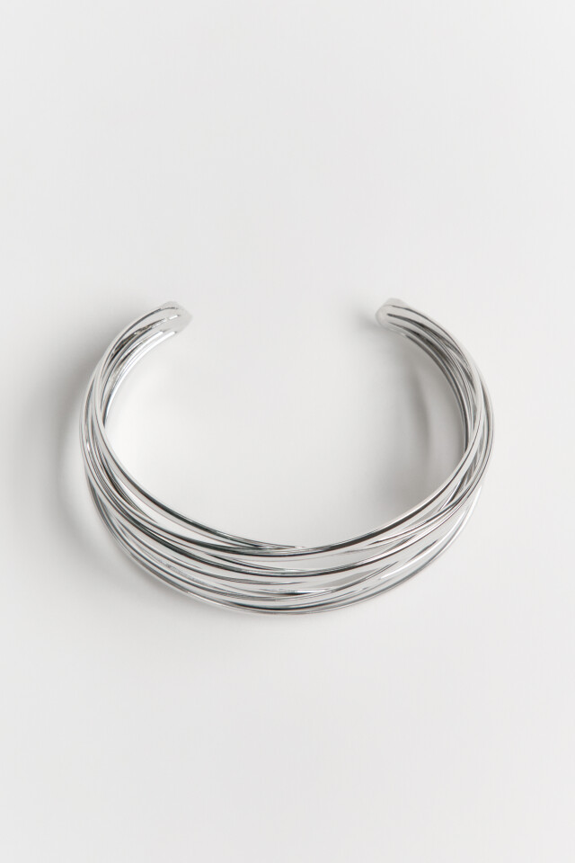 Браслет несмыкающийся серебристый многослойный