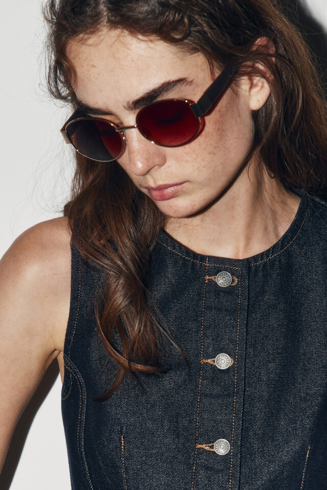 Очки солнцезащитные в тонкой овальной оправе