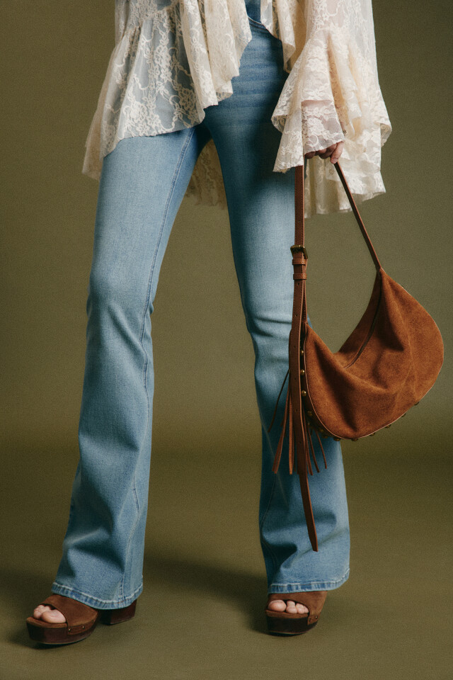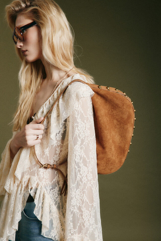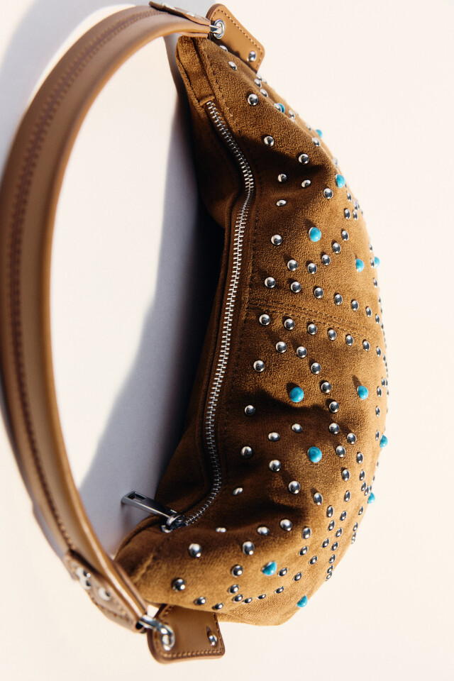 Сумка-кроссбоди с замшевой фактурой и заклепками