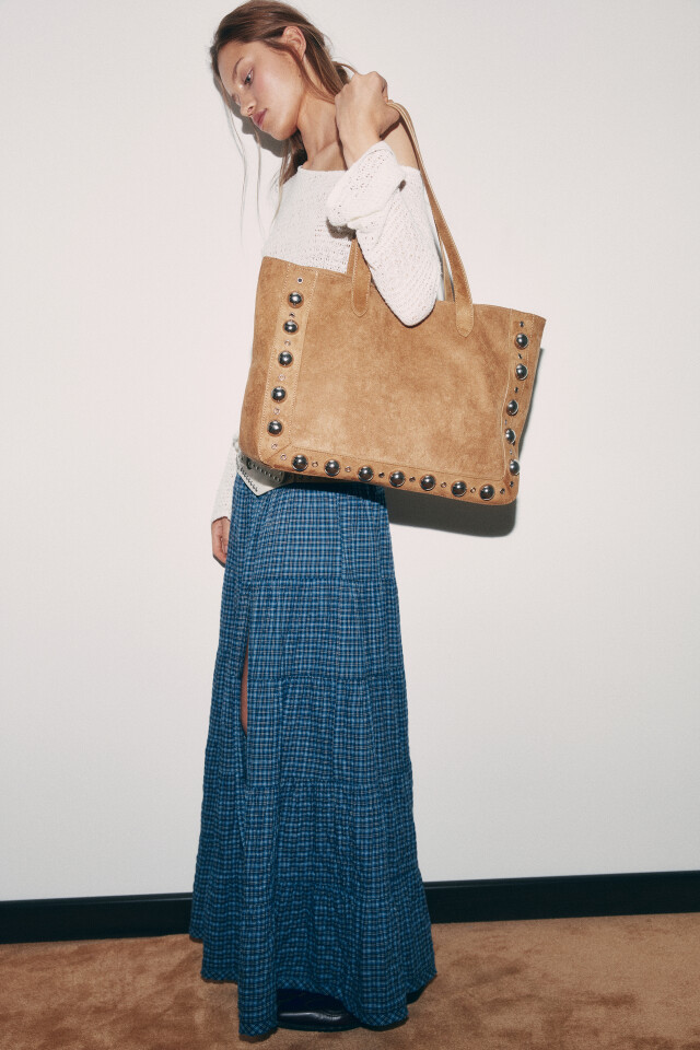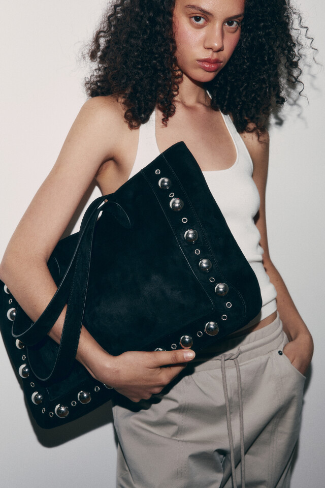 Сумка-шопер с замшевой фактурой и металлическим декором