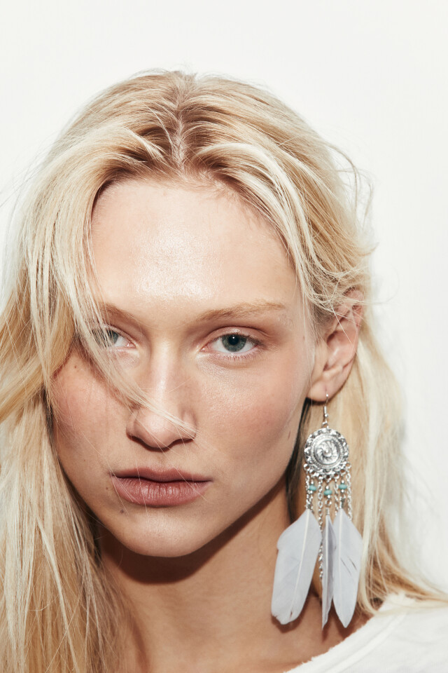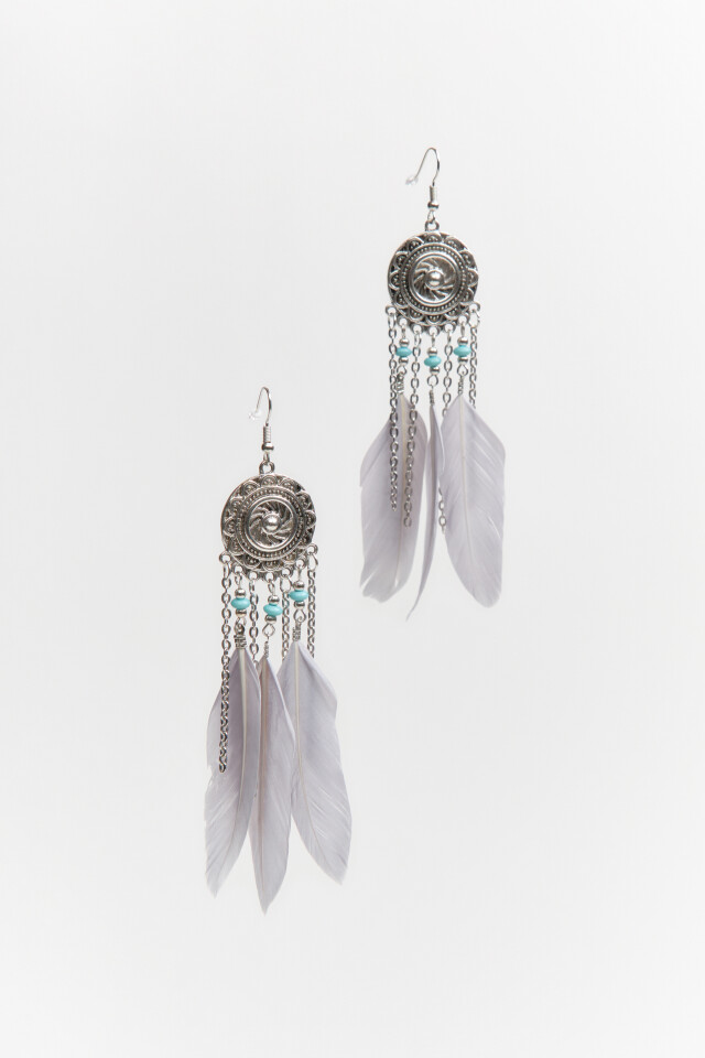 Серьги-продевки с цепочками и перьями