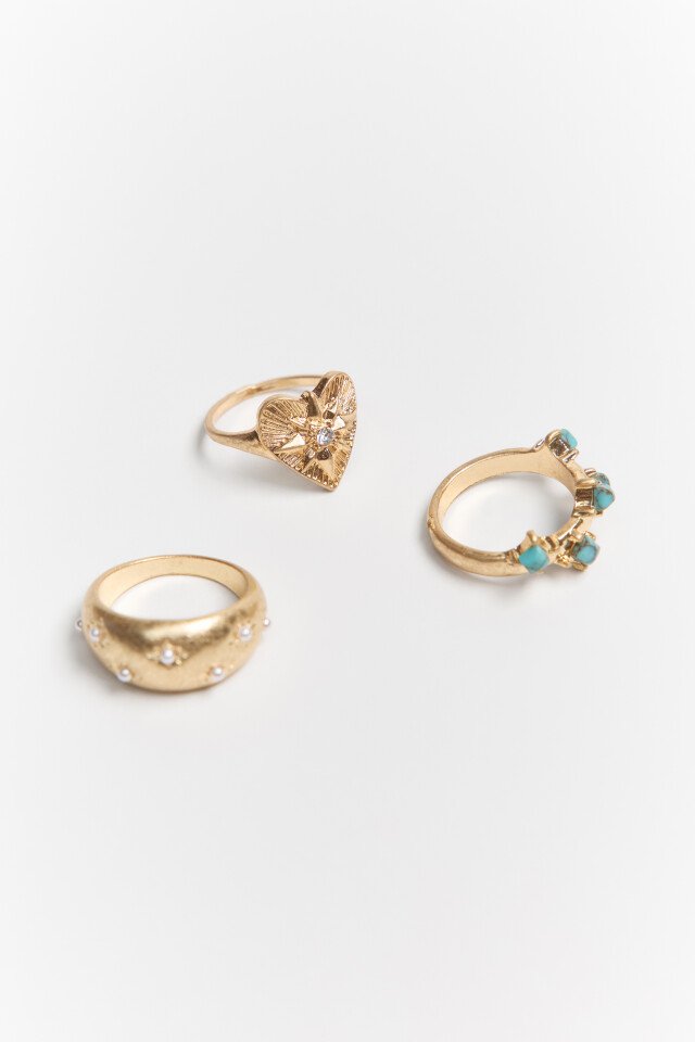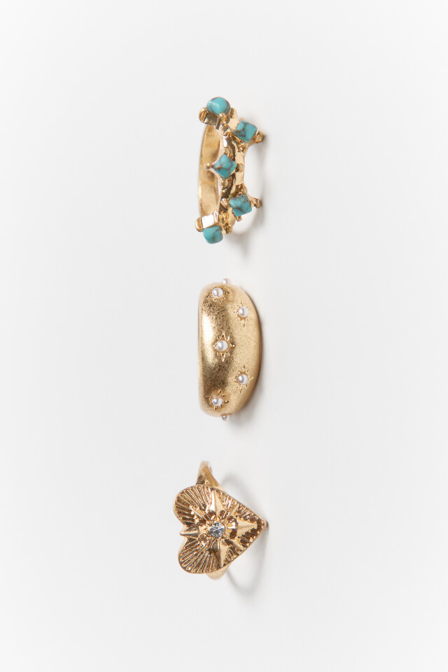 Набор колец фигурных золотистых (3 штуки)