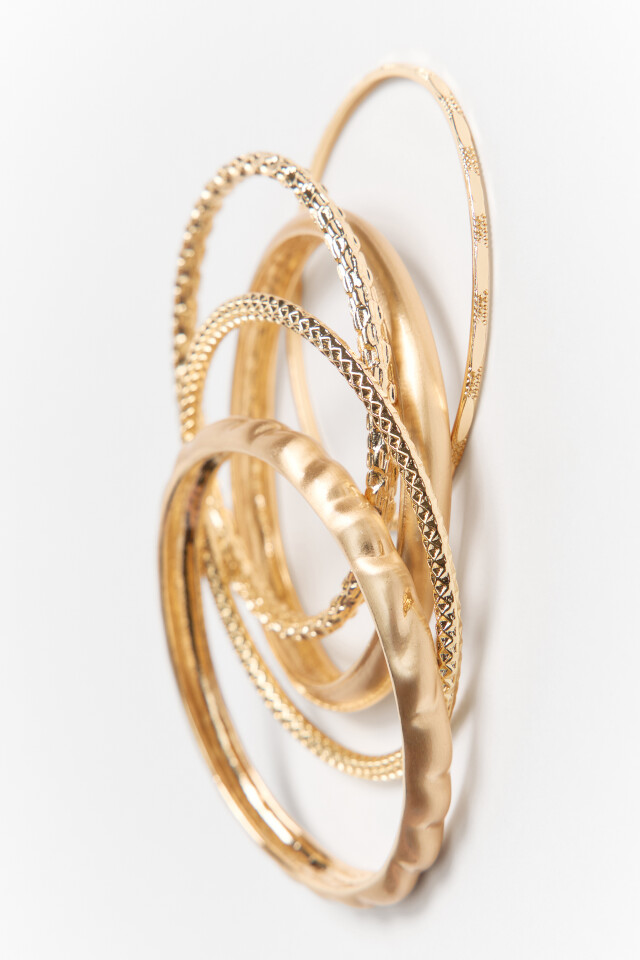 Набор браслетов золотистых с разной текстурой (5 штук)