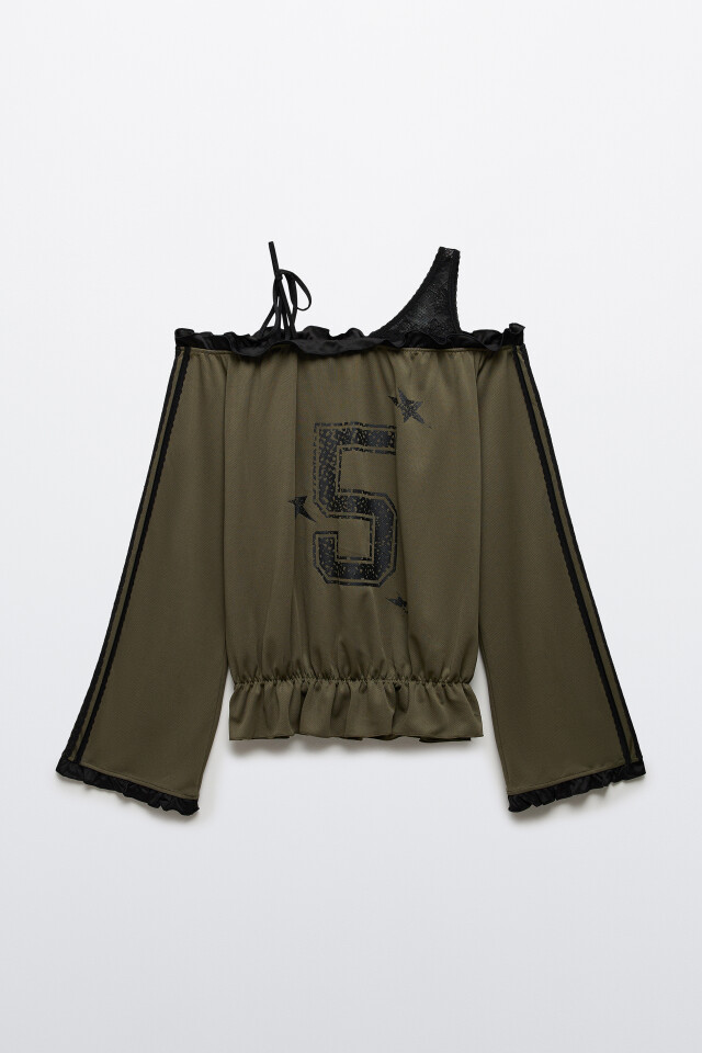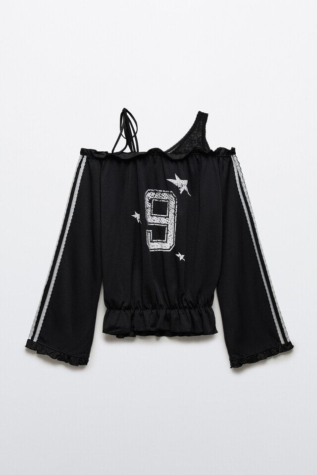 Блузка-джерси с открытыми плечами и кружевом