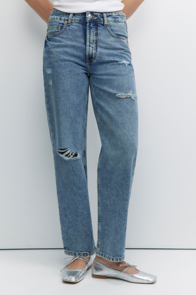 Джинсы straight прямые с рваными коленями и потертостями
