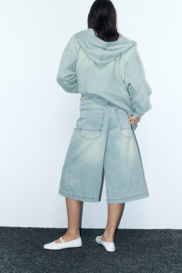Шорты-бермуды джинсовые широкие с открытыми срезами