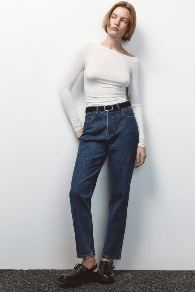 Они достаточно универсальны, чтобы сочетаться с чем угодно: от кроп-топов и облегающих боди до уютных оверсайз свитеров и свободных рубашек. Такие джинсы могут стать основной и для вечернего образа: для этого выбери базовую синюю модель, дополни ее струящимся топом, накинь сверху элегантный пиджак и добавь аксессуары.
