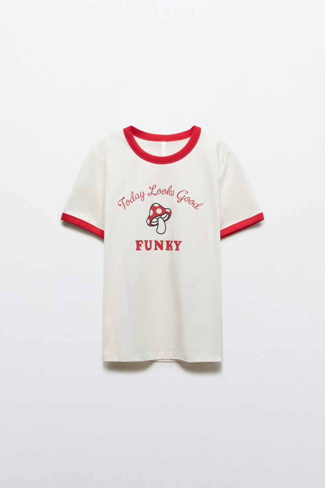 Футболка хлопковая с принтом и контрастным кантом
