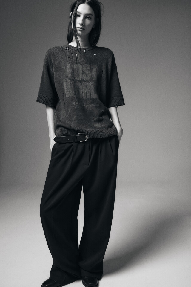 Футболка вязаная рваная с пирсингом