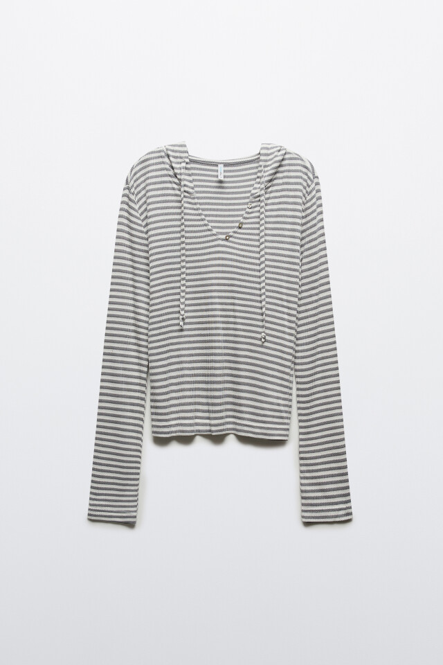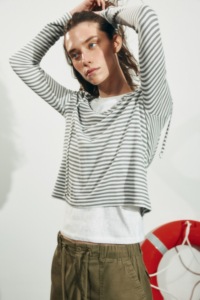 Лонгслив свободный на шнуровке с капюшоном