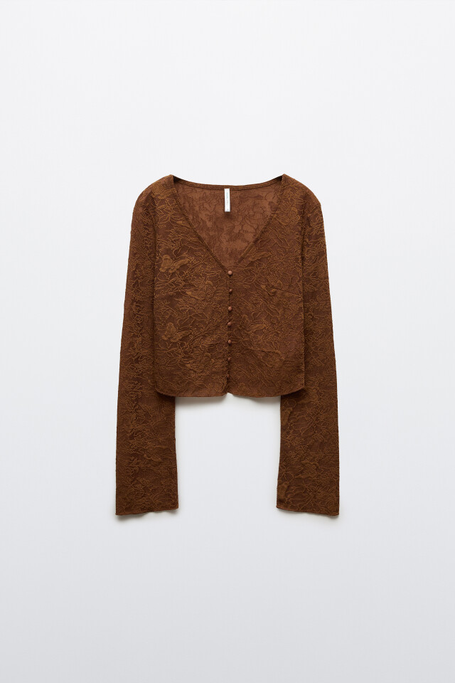 Лонгслив облегающий кружевной на пуговицах
