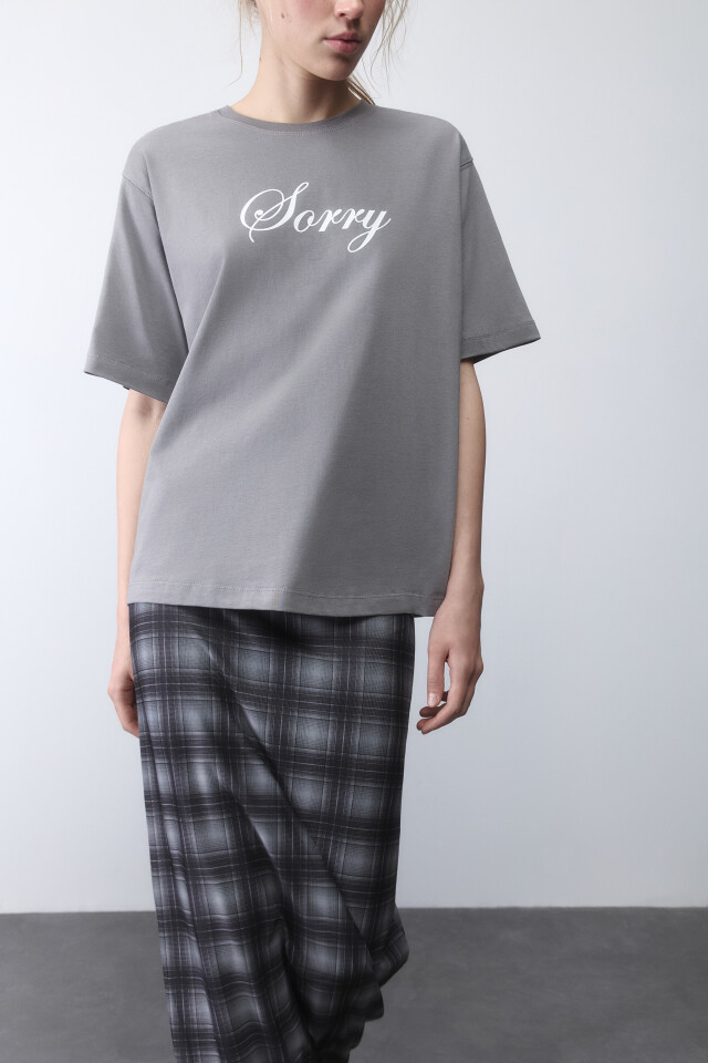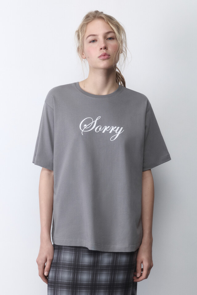 Футболка прямая хлопковая с принтом-надписью