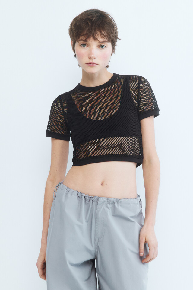 Лонгслив облегающий с сетчатыми рукавами-реглан