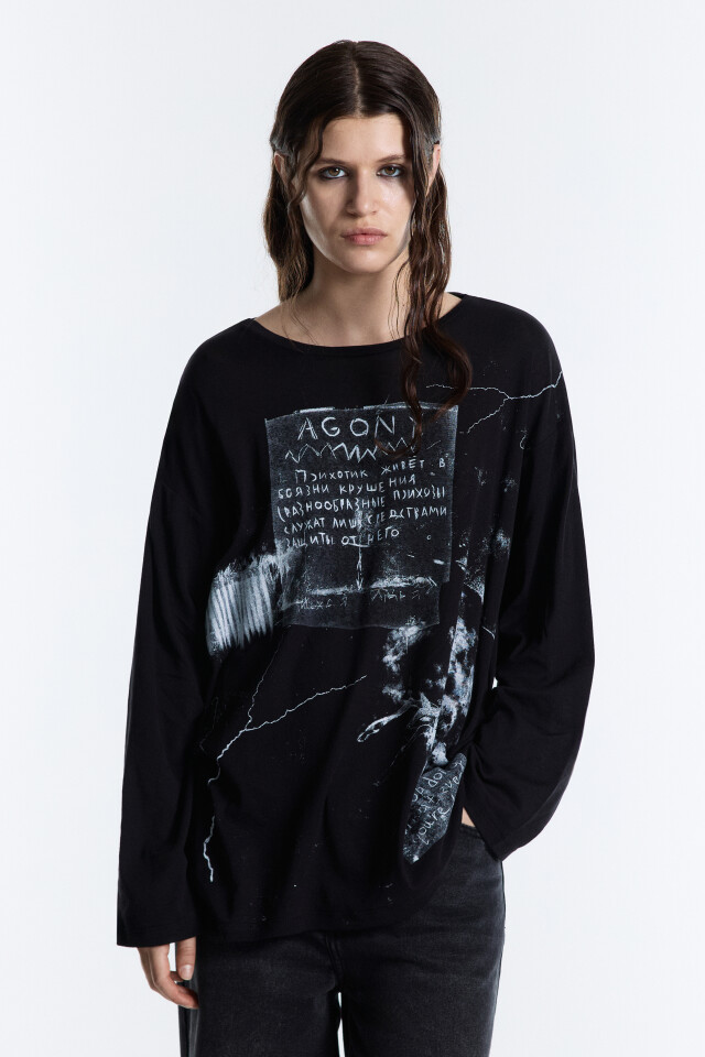 Лонгслив oversize с принтом в стиле гранж