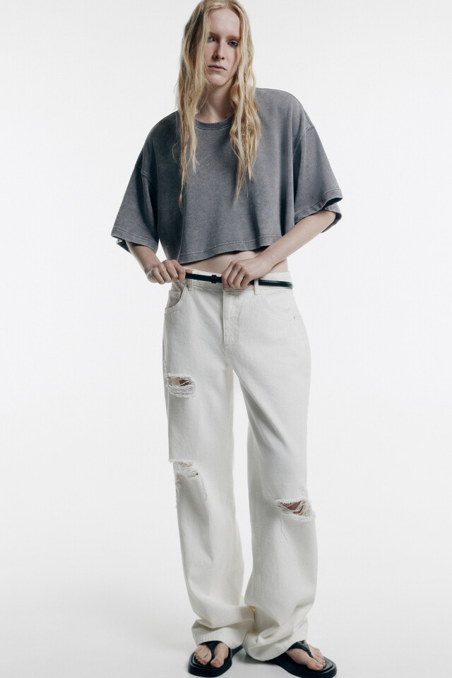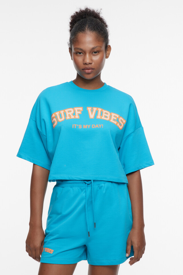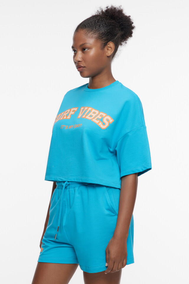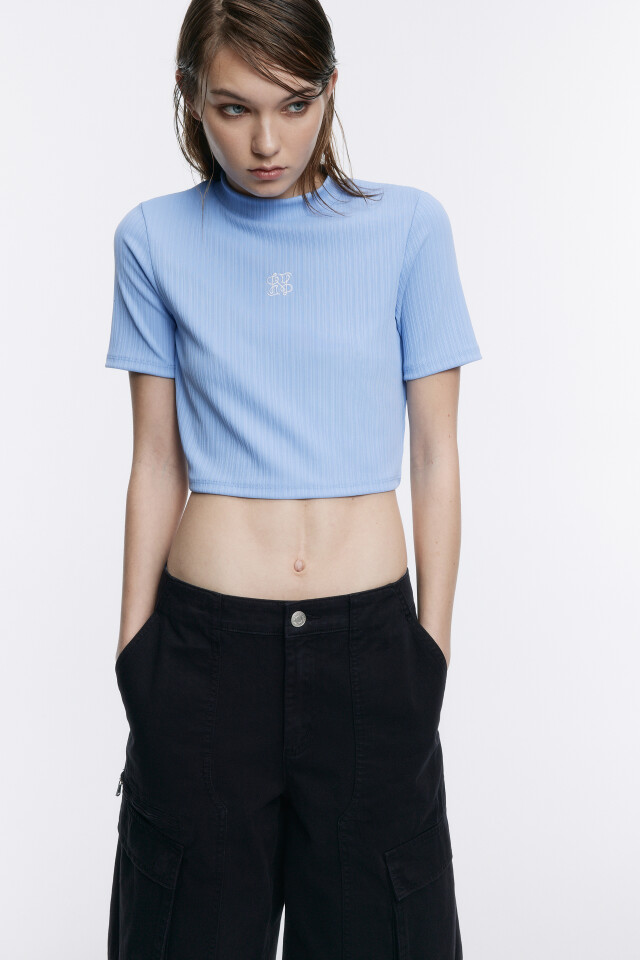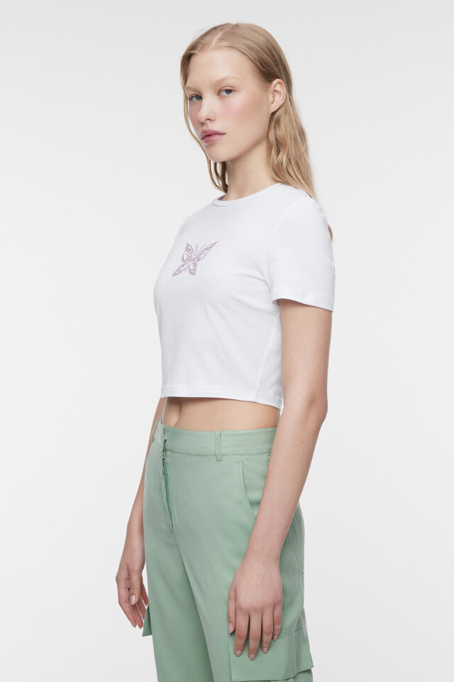 Топ-футболка хлопковый укороченный с принтом и стразами
