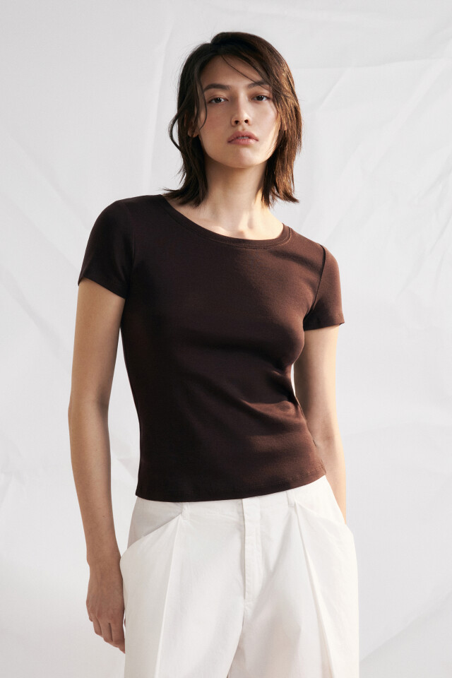 Лонгслив хлопковый укороченный с круглым вырезом