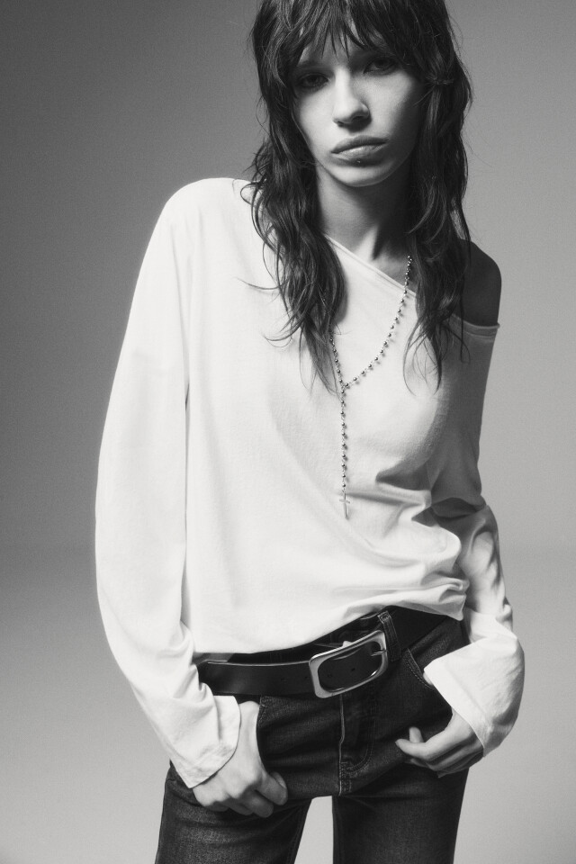Лонгслив с разрезом и асимметричным низом