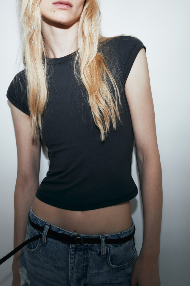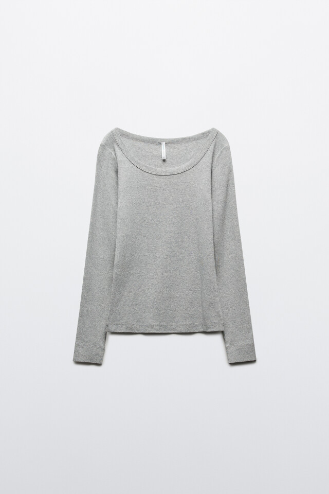 Лонгслив облегающий в рубчик с кружевной отделкой