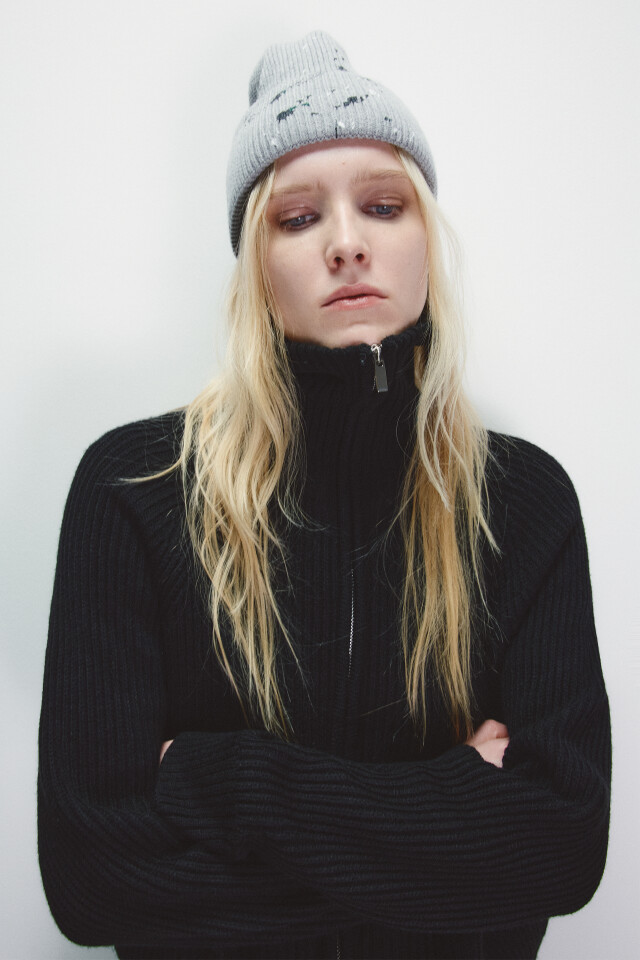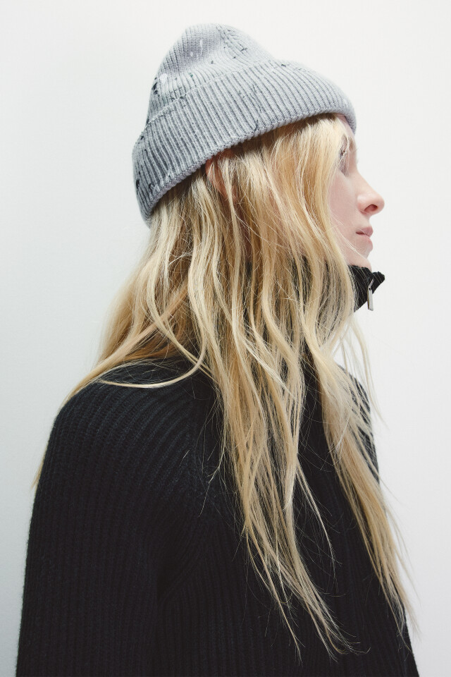 Шапка-бини с пятнами краски
