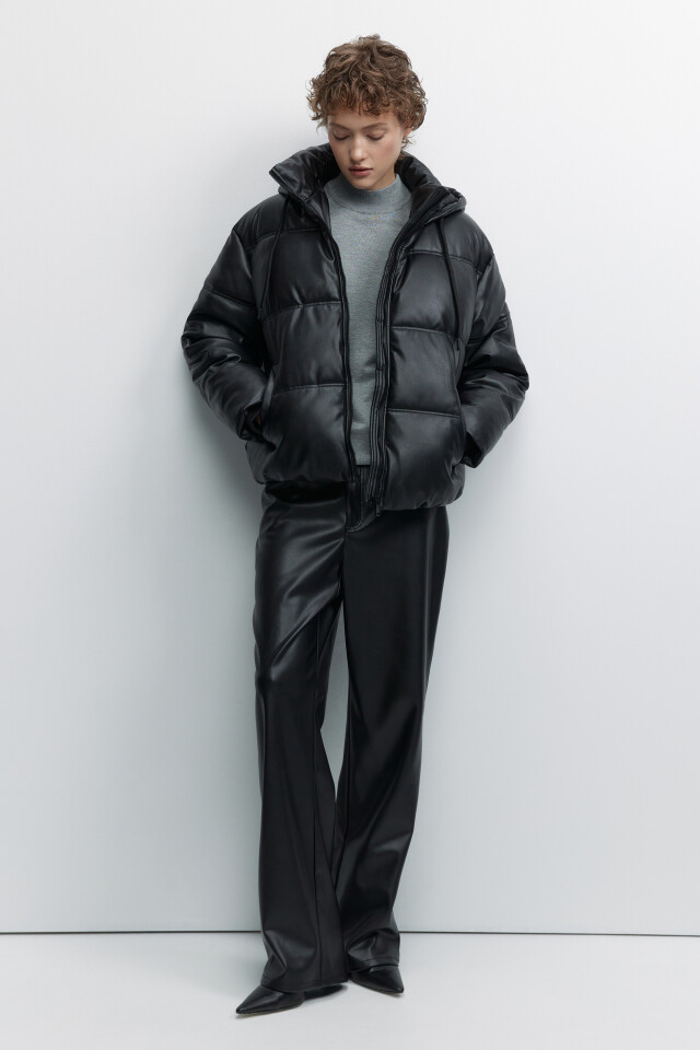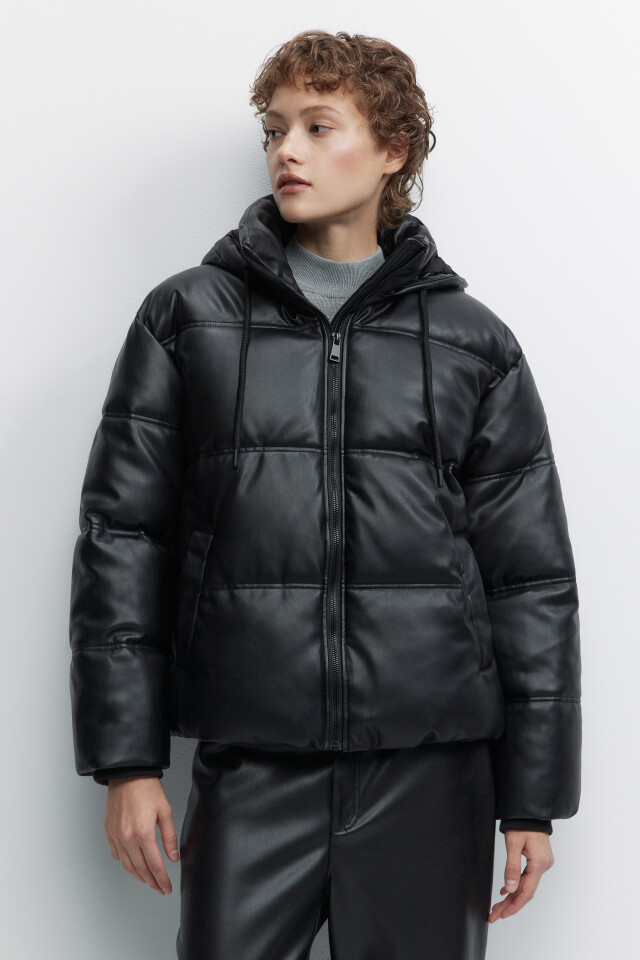 Куртка с кожаной фактурой без капюшона утепленная