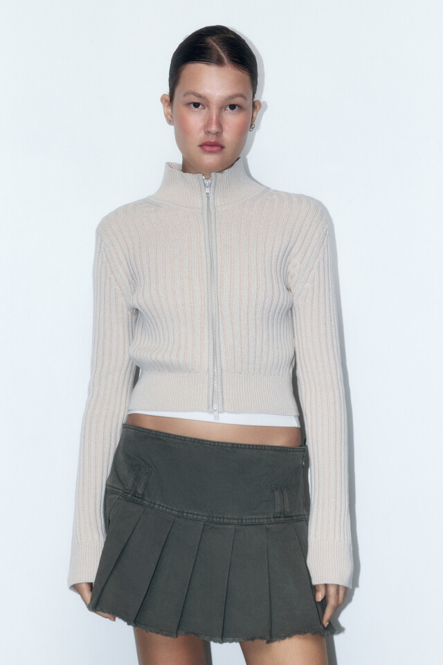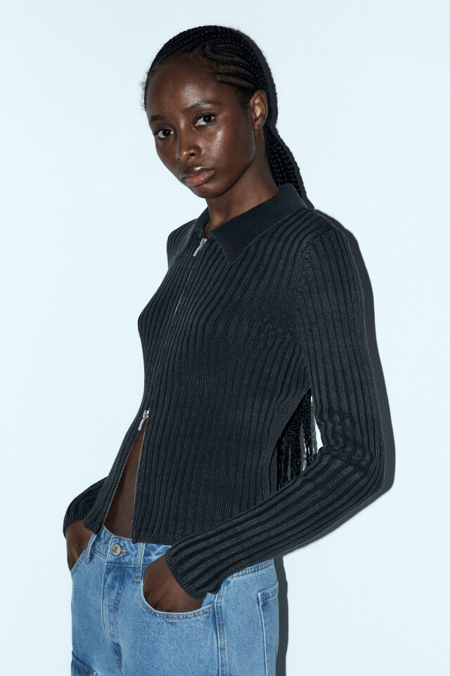 Кардиган на молнии вязаный с открытыми плечами