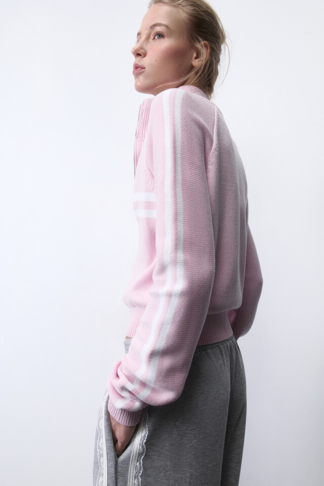 Кардиган вязаный на молнии с лампасами